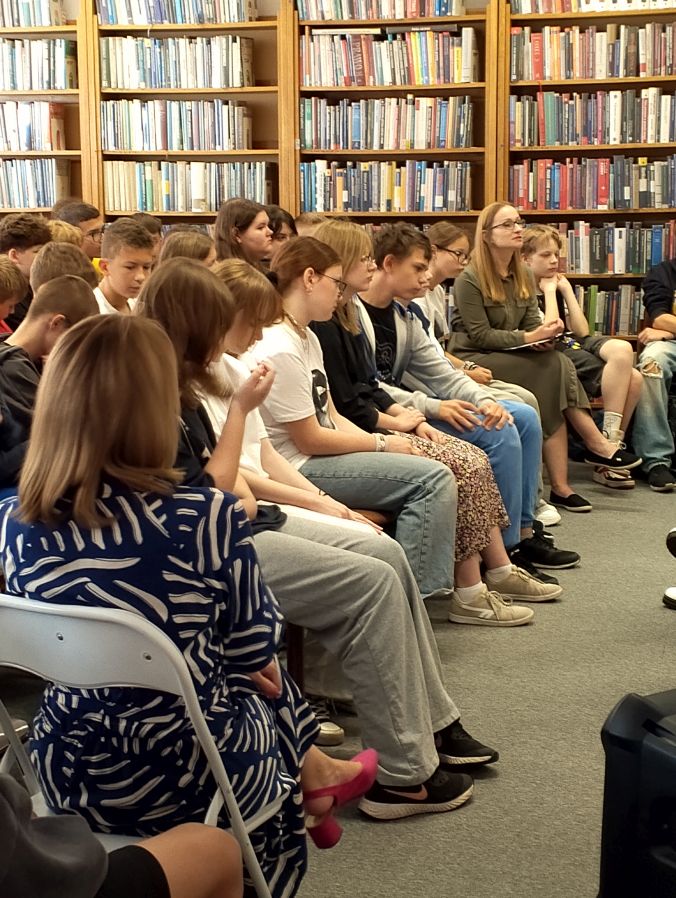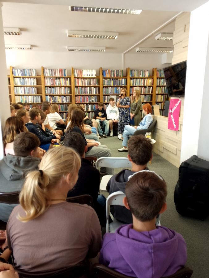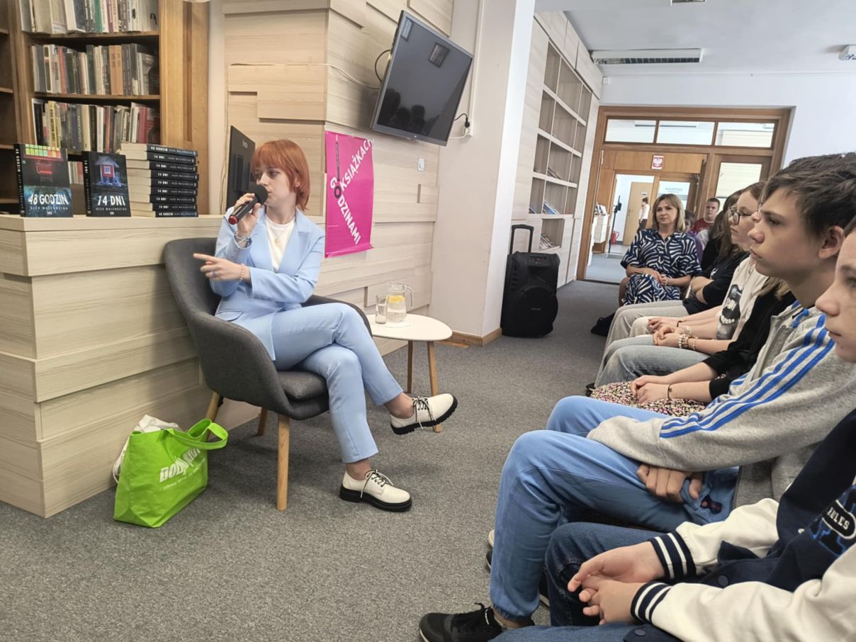 We wtorek, 9 września 2025 roku, w Miejskiej Bibliotece Publicznej w Hajnówce odbyło się spotkanie autorskie z młodą pisarką Aleksandrą Walendziuk, autorką bestsellerowej trylogii young adult, składającej się z książek "48 godzin", "14 dni" i "46800 sekund". Biblioteka gościła uczniów z czterech hajnowskich szkół podstawowych, którzy mieli okazję porozmawiać z autorką o jej twórczości, inspiracjach i planach na przyszłość.