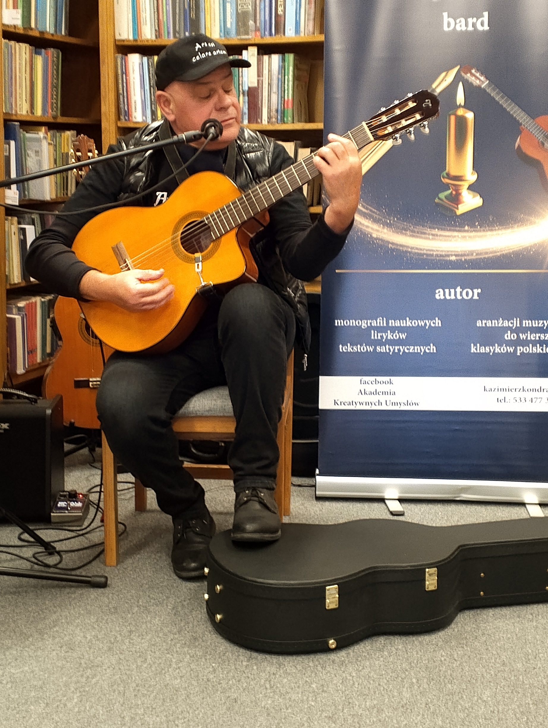 W czwartkowy wieczór w bibliotece gościliśmy Pana Kazimierza Kondrata – w jednej osobie filozofa, religioznawcę i barda. Kameralny koncert P. Kondrata pod tytułem „Poetycki swing” wprowadził nas w klimaty jesienne tekstami poetyckimi Konstantego Ildefonsa Gałczyńskiego, Juliana Tuwima czy Bolesława Leśmiana, ale także Agnieszki Osieckiej, Wolnej Grupy Bukowina oraz jego własnymi.