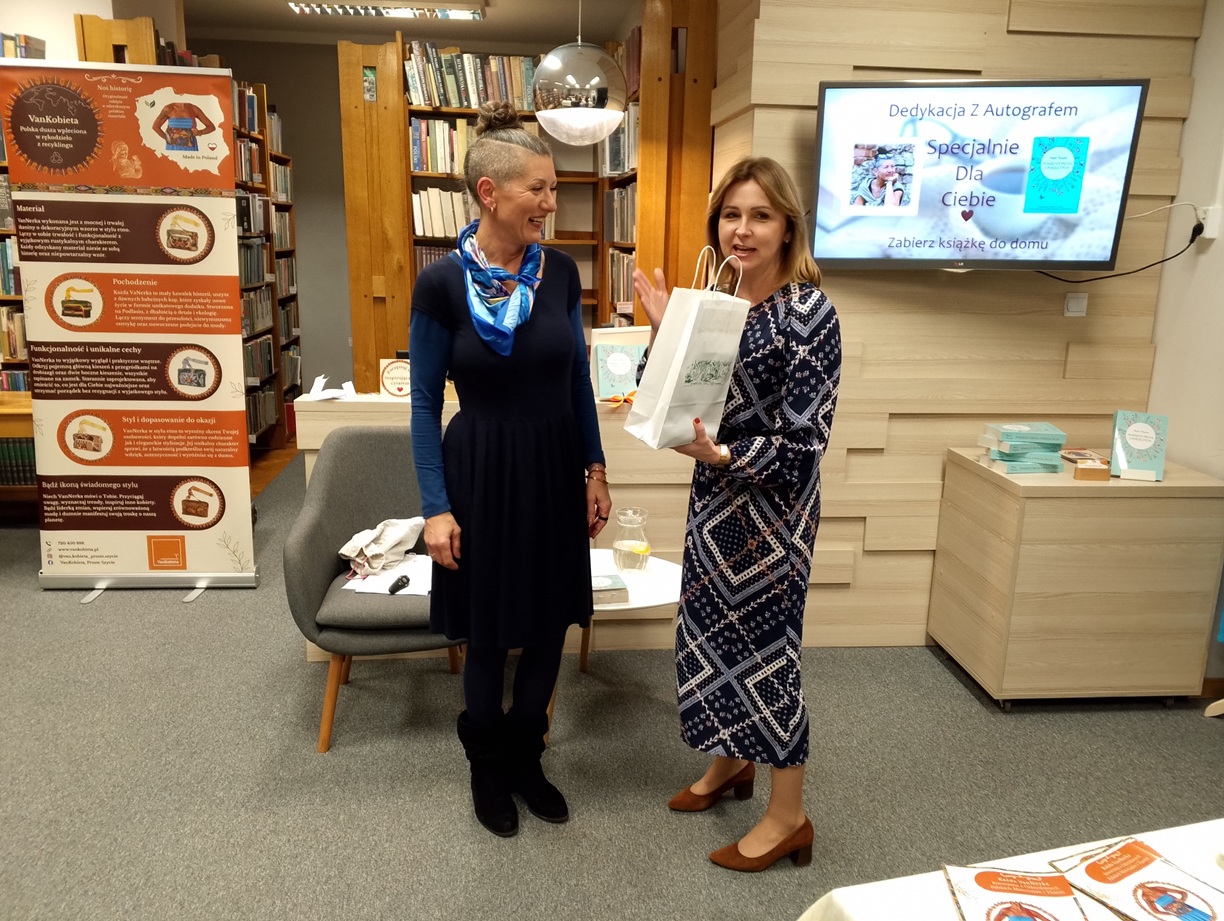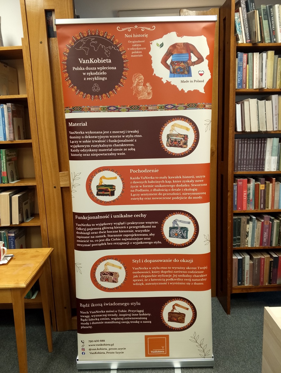 Spotkaniu towarzyszyła też prezentacja tworzonych przez p. Basię toreb o autorskiej nazwie „VanNerka”. VanNerki są twórczym efektem „drugiego życia” podlaskich tkanin – kap, narzut, makatek – będąc jednocześnie piękną i pożyteczną promocją podlaskiej kultury, jednocześnie tej dawnej i dzisiejszej.