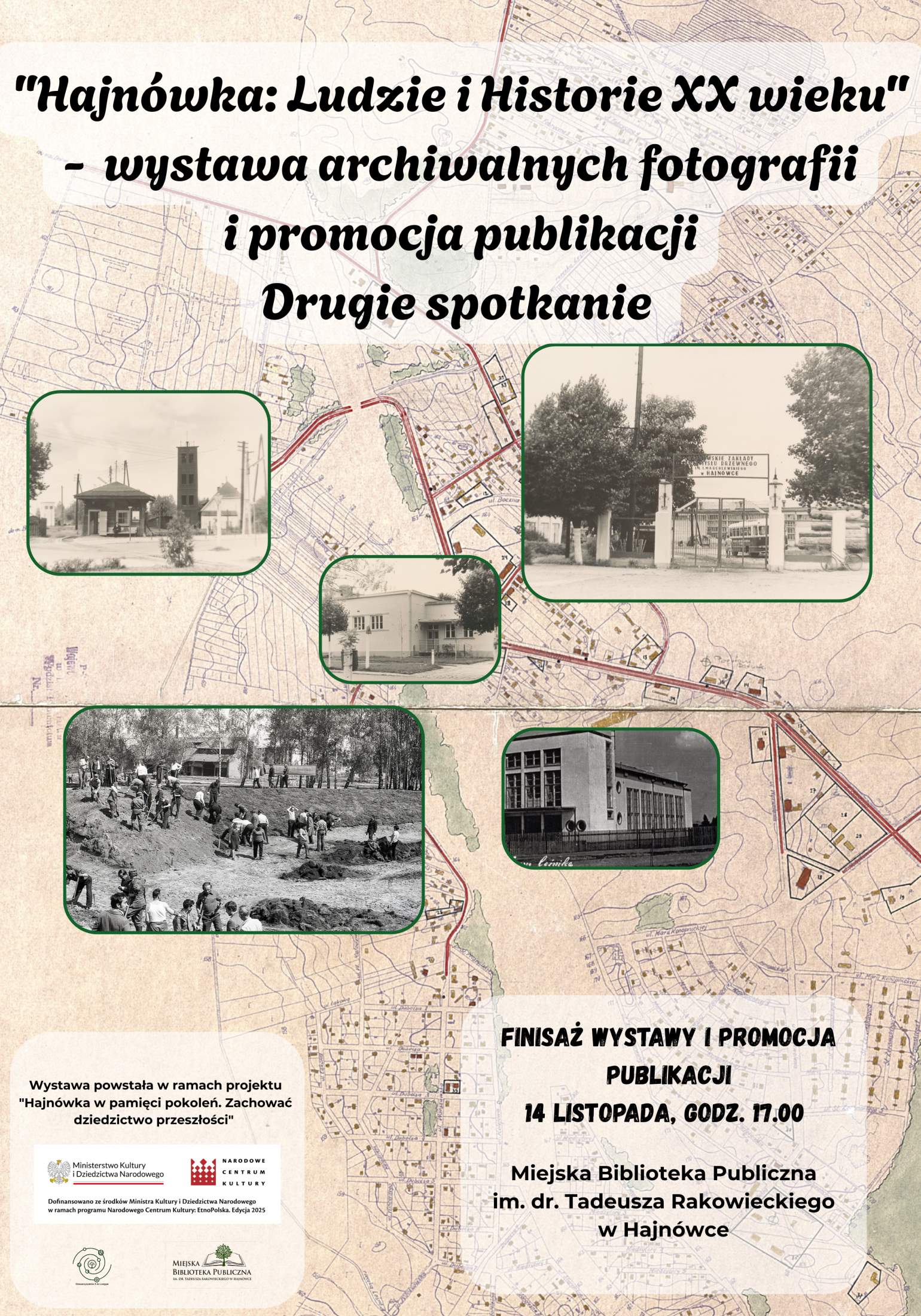 Stowarzyszenie A la Longue i Miejska Biblioteka Publiczna im. dr. Tadeusza Rakowieckiego w Hajnówce zapraszają na finisaż wystawy i promocję publikacji pt. "Hajnówka: Ludzie i Historie XX wieku", która odbędzie się w piątek 14 listopada 2025 r. o godz. 17:00 w Czytelni dla Dorosłych.
