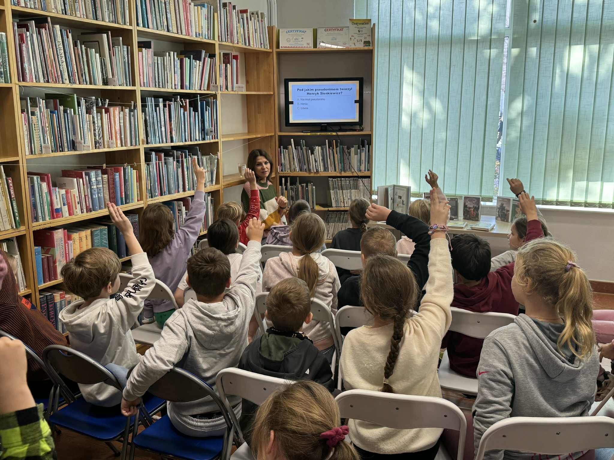 W dniach 4-6 listopada w naszej bibliotece odbyły się zajęcia edukacyjne poświęcone życiu i twórczości Henryka Sienkiewicza, skierowane do uczniów klas trzecich Szkoły Podstawowej nr 4 im. H. Sienkiewicza w Hajnówce. Celem spotkań było przybliżenie dzieciom sylwetki jednego z najwybitniejszych polskich pisarzy oraz patrona ich szkoły.