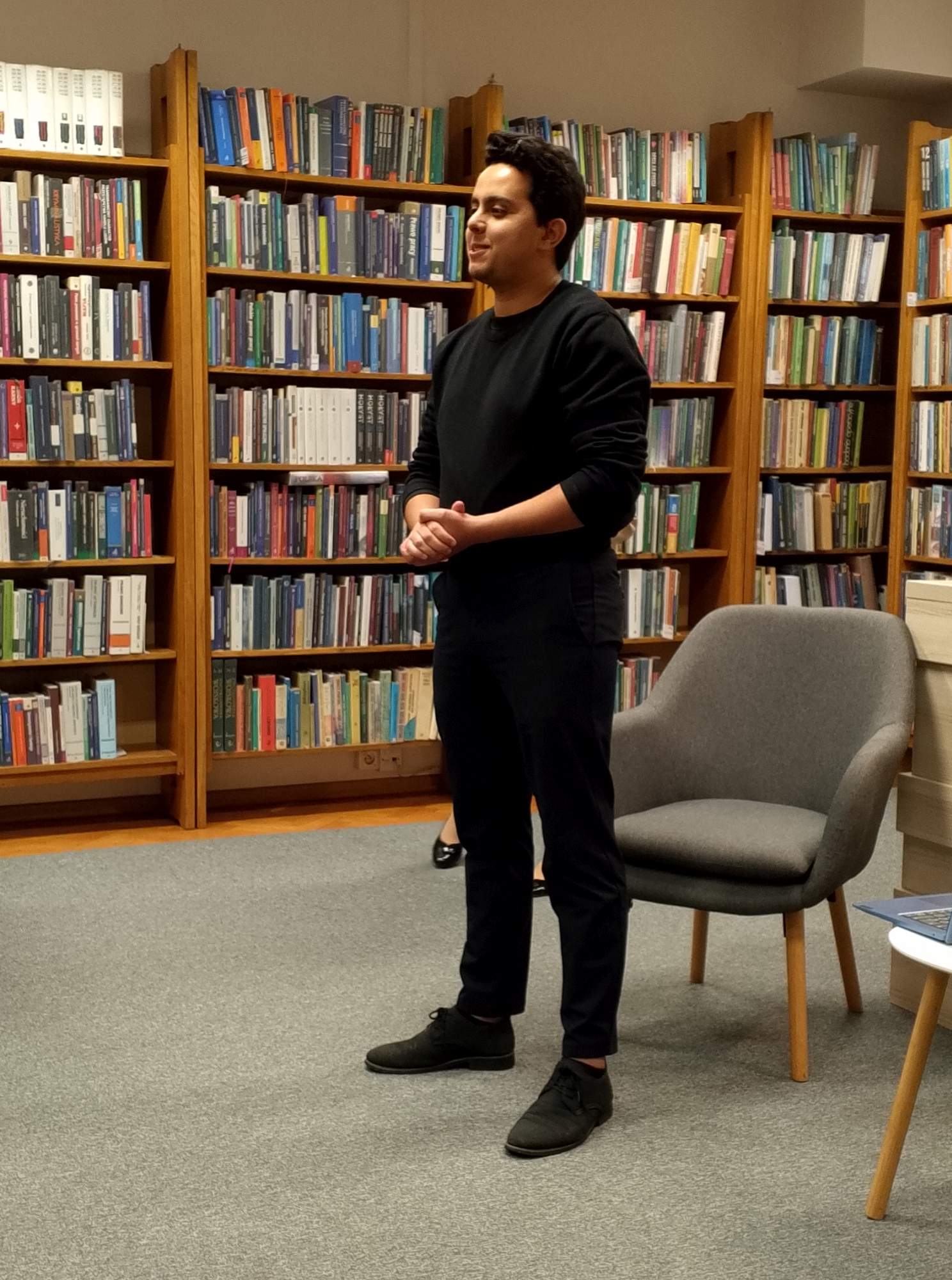 Nasz gość opowiedział zebranym o powodach, które skłoniły go do chwycenia za pióro, jak i o swojej ostatniej powieści pod tytułem "Ułuda", wyjaśniając, jakiego rodzaju problematyka była w niej najbardziej dla niego istotna i co chciał czytelnikom w treści książki przekazać. W trakcie wystąpienia oraz dialogu z uczestnikami spotkania często przewijały się wątki miłości, prawdy i kłamstwa, z licznymi odniesieniami szekspirowskimi.