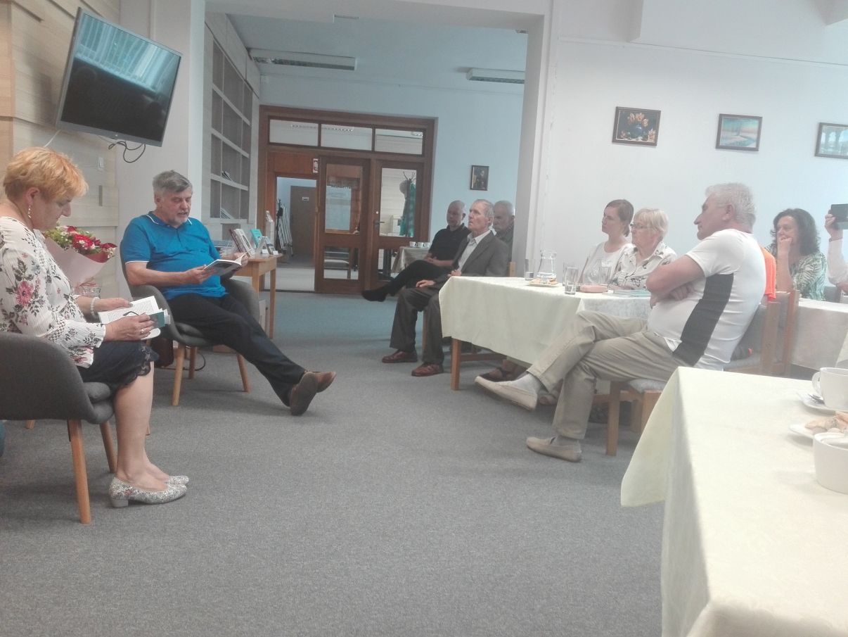 Podczas spotkania Pani Halina i Pan Jan barwnie i interesująco opowiadali m.in. o swoim życiu, Podlasiu, losach, które sprawiły, że się spotkali, a następnie wyjechali do Czech oraz o popularyzacji języka podlaskiego, w którą to działalność oboje są bardzo zaangażowani. Opowieści były przeplatane czytanymi przez nich na głos fragmentami swoich książek.