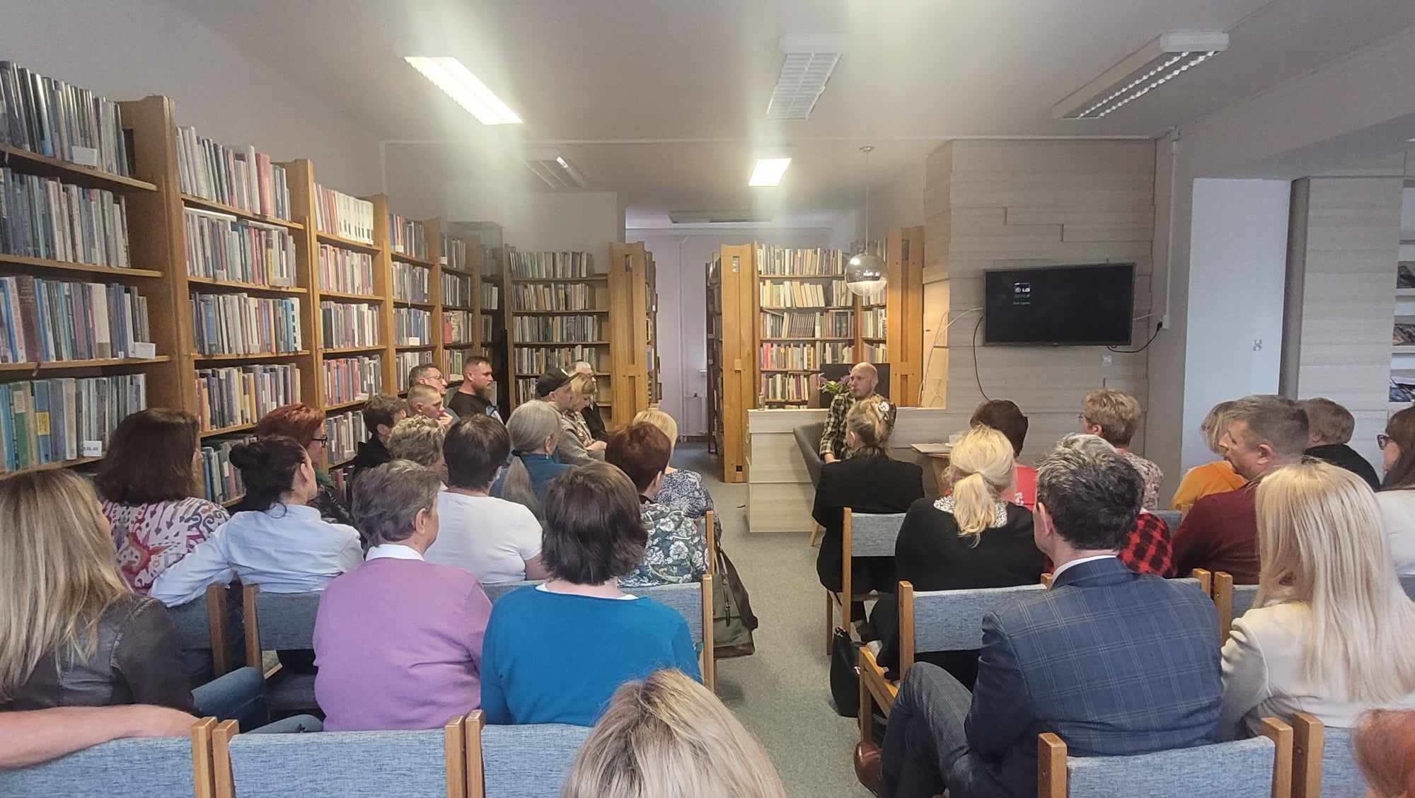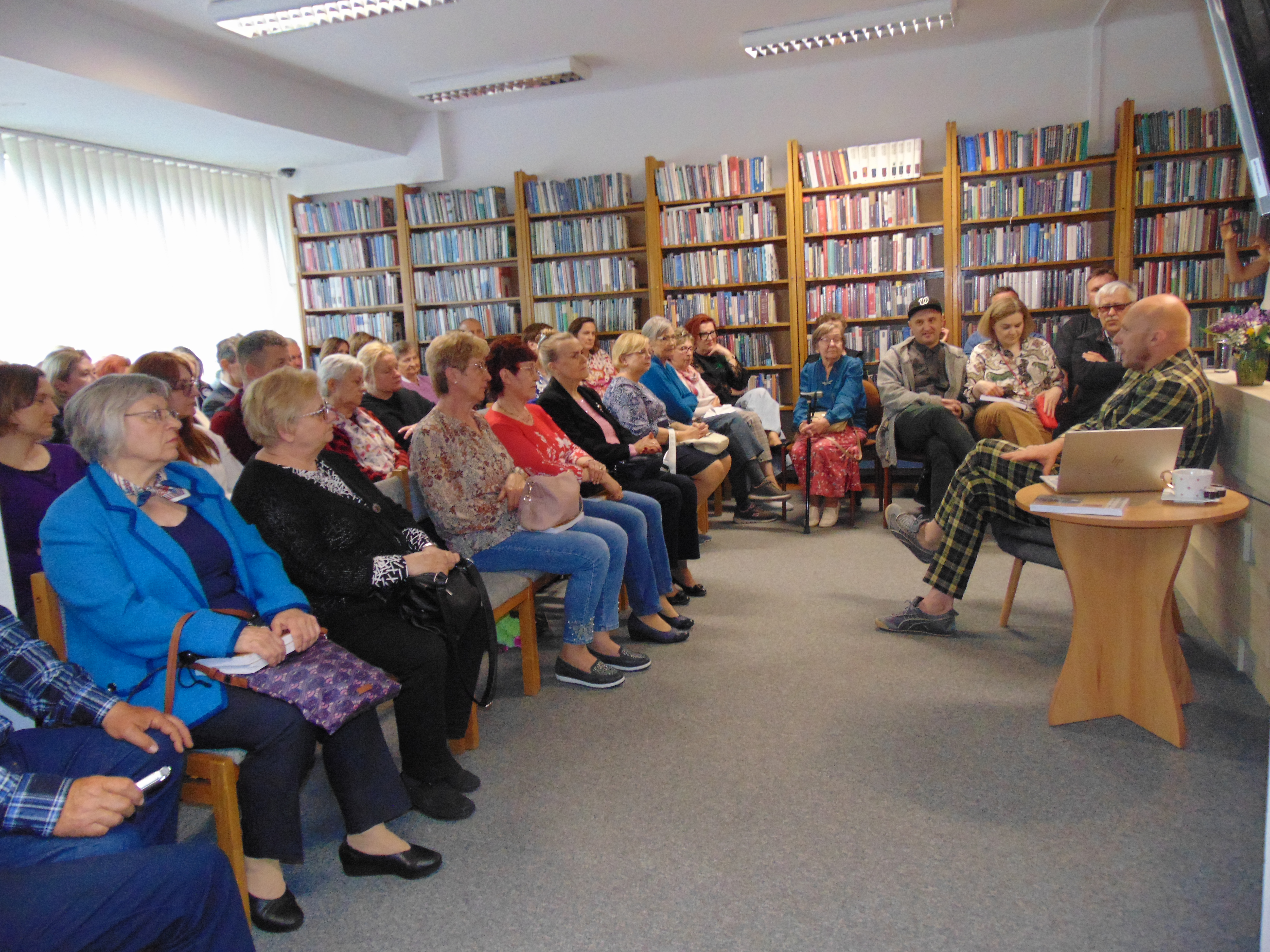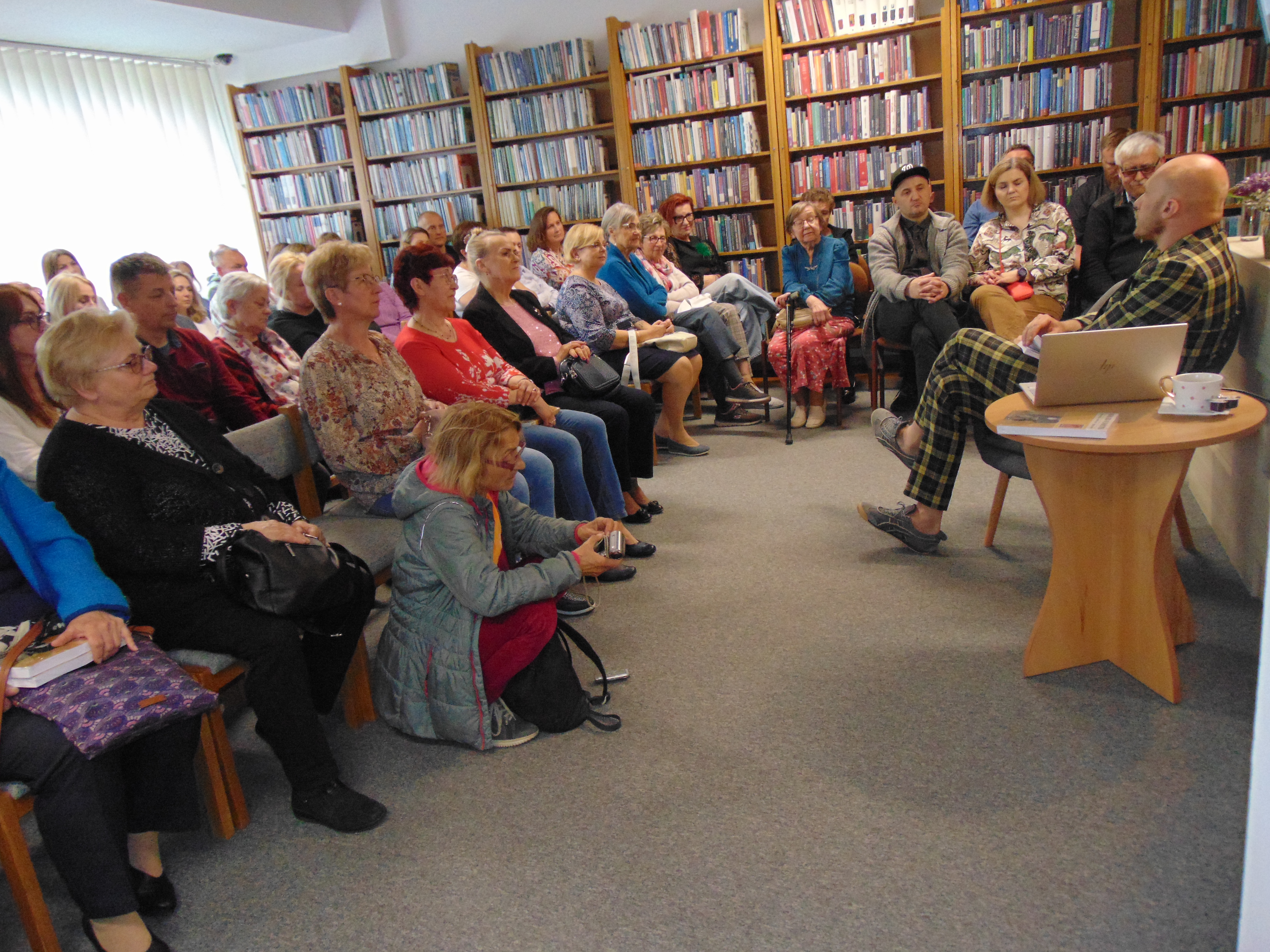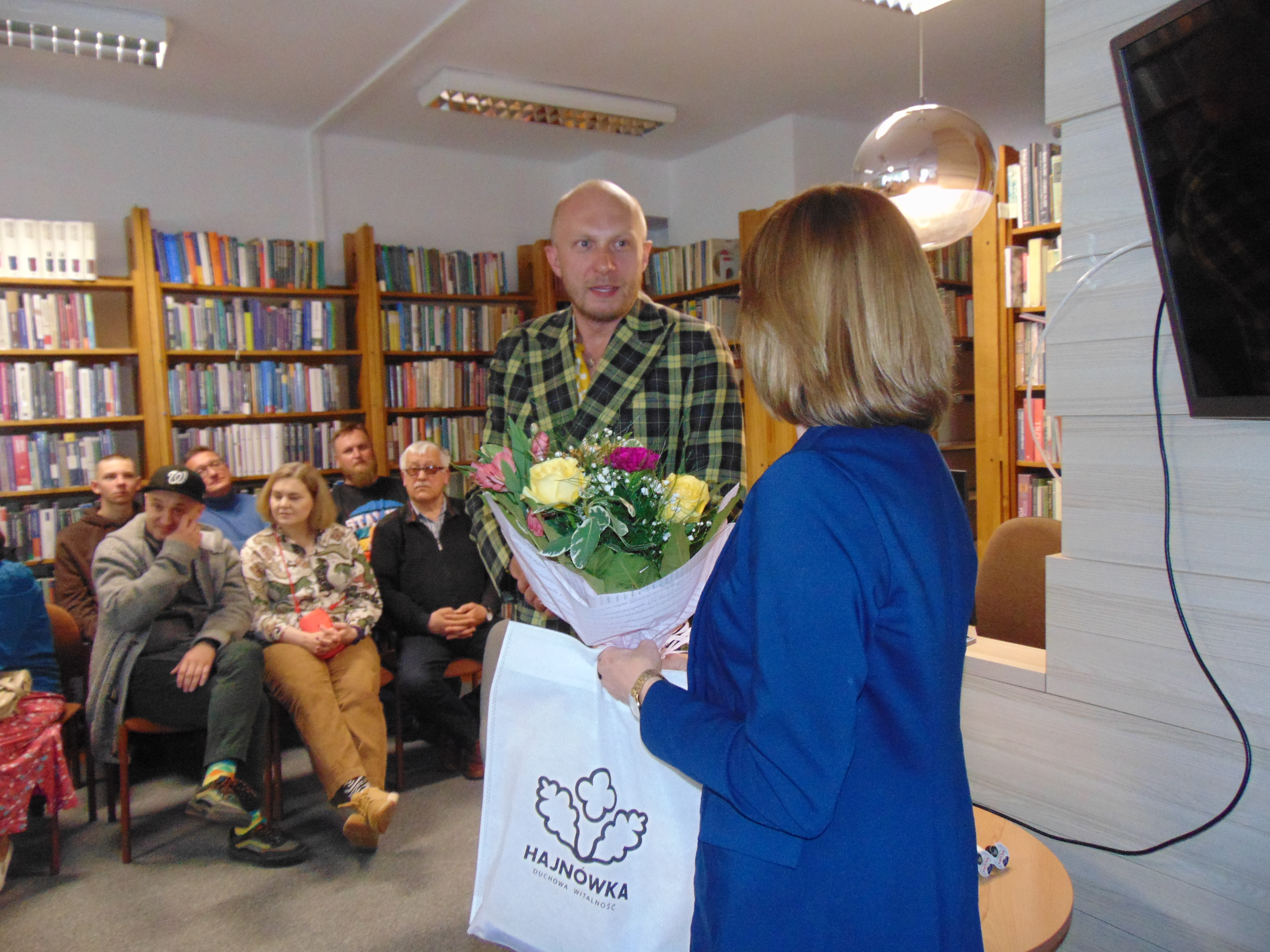 Pochodzący z Hajnówki dziennikarz spotkał się z czytelnikami naszej biblioteki, wśród których nie mogło zabraknąć przyjaciół, rodziny i znajomych, którzy przez ostatnie lata mogli jedynie słuchać jego relacji z dalekiego Pekinu. Wyjątkową atmosferę pośród gremialnie zgromadzonej publiczności podgrzewał sam Tomasz, barwnie opowiadając o swojej pracy i prawie dwudziestoletnim pobycie w Chinach.