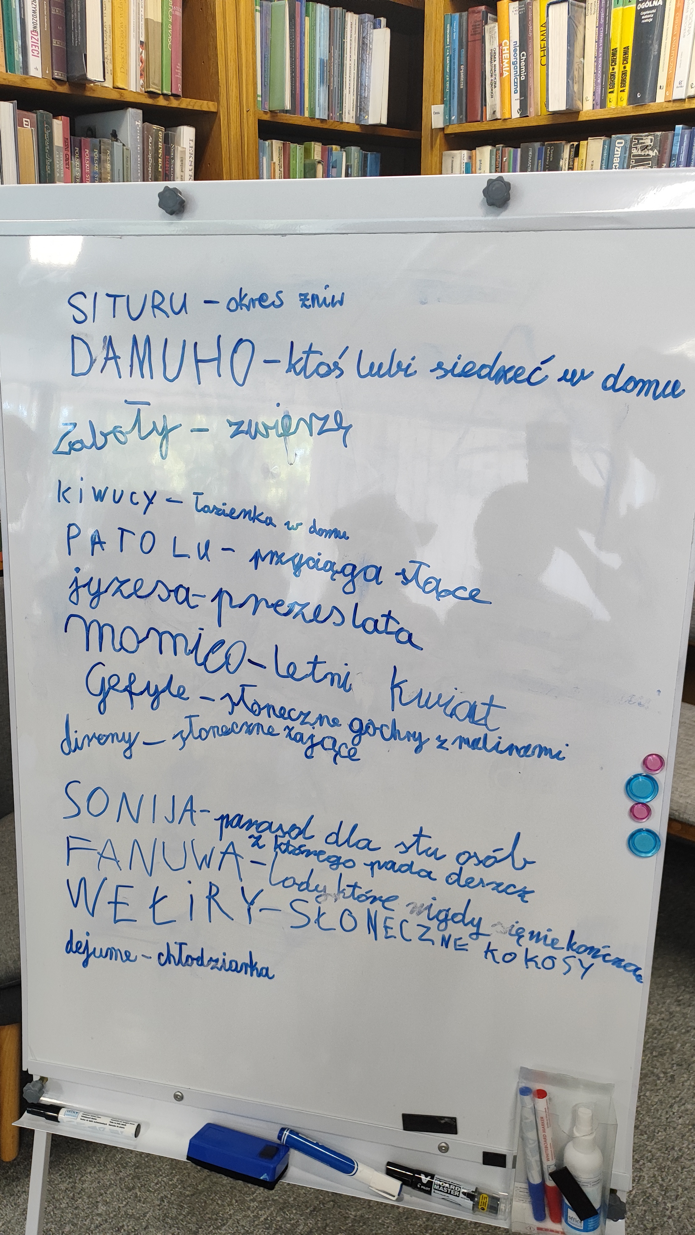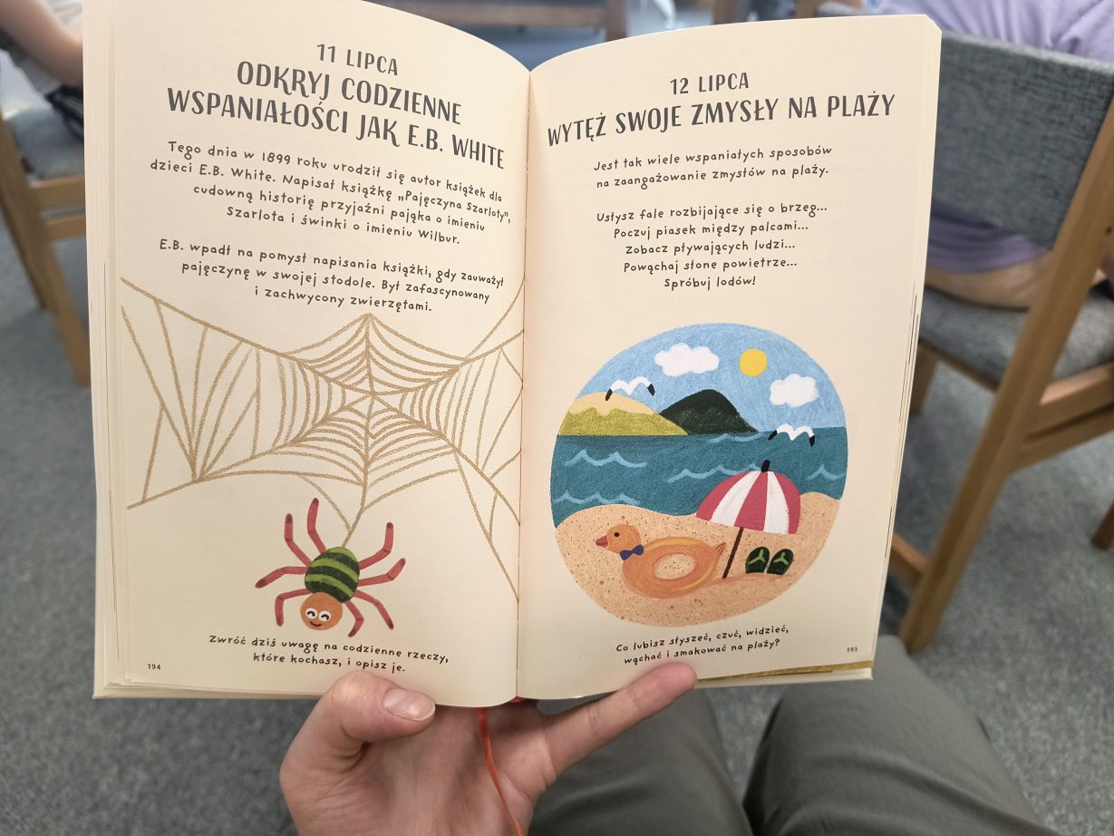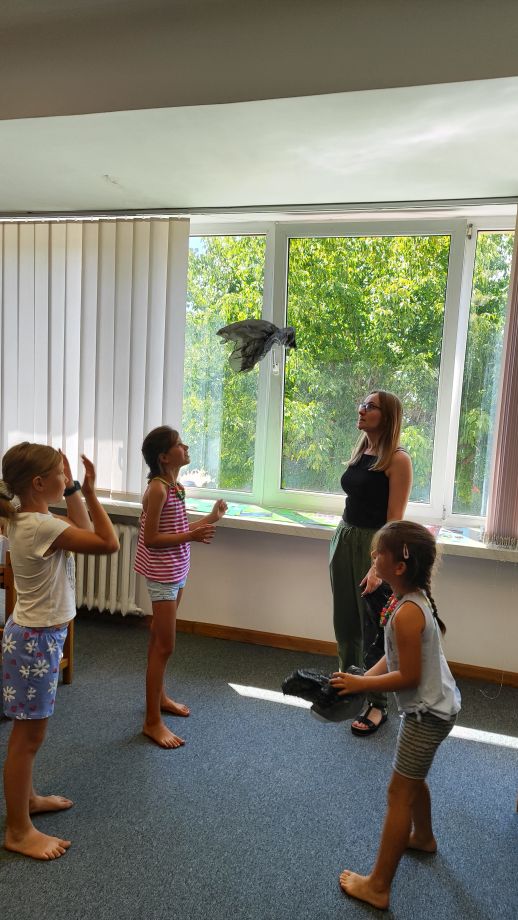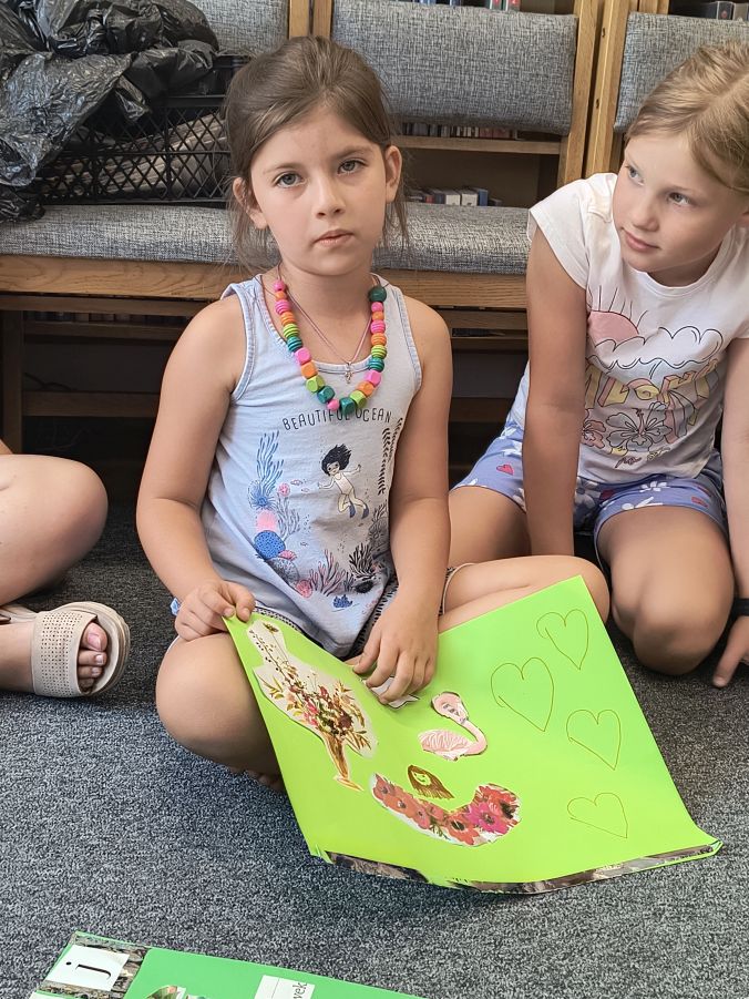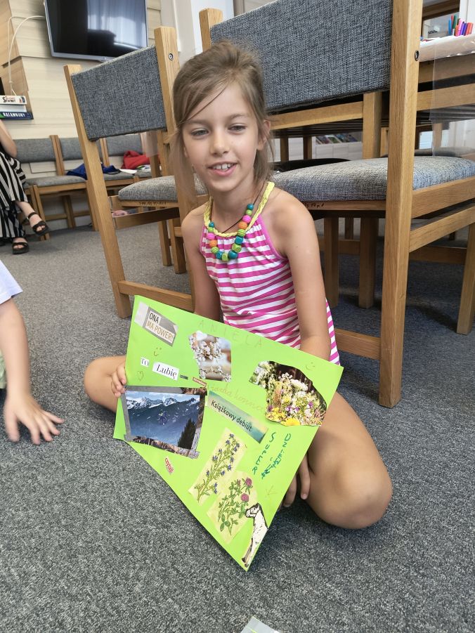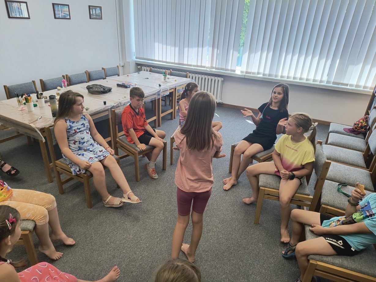 Rozpoczęliśmy 8 lipca od zapoznania się, ustalenia kontraktu grupowego oraz kilku zabaw integrujących uczestników. W kolejnych dniach przez działania kreatywne, słowne i ruchowe bawiliśmy się, poznając się coraz lepiej. Projektowaliśmy własny ogród, wyklejaliśmy kolaż z kolorowych gazet, wymyślaliśmy nowe słowa, a nawet napisaliśmy dwa wiersze. Był czas na zabawy proponowane przez uczestników, przekąski oraz gry planszowe. Gorąca atmosfera nas nie opuszczała, słońce dodawało energii, a humory każdego dnia sprzyjały. Krótko mówiąc było wesoło, gwarno i bardzo kreatywnie. 8.07.2024