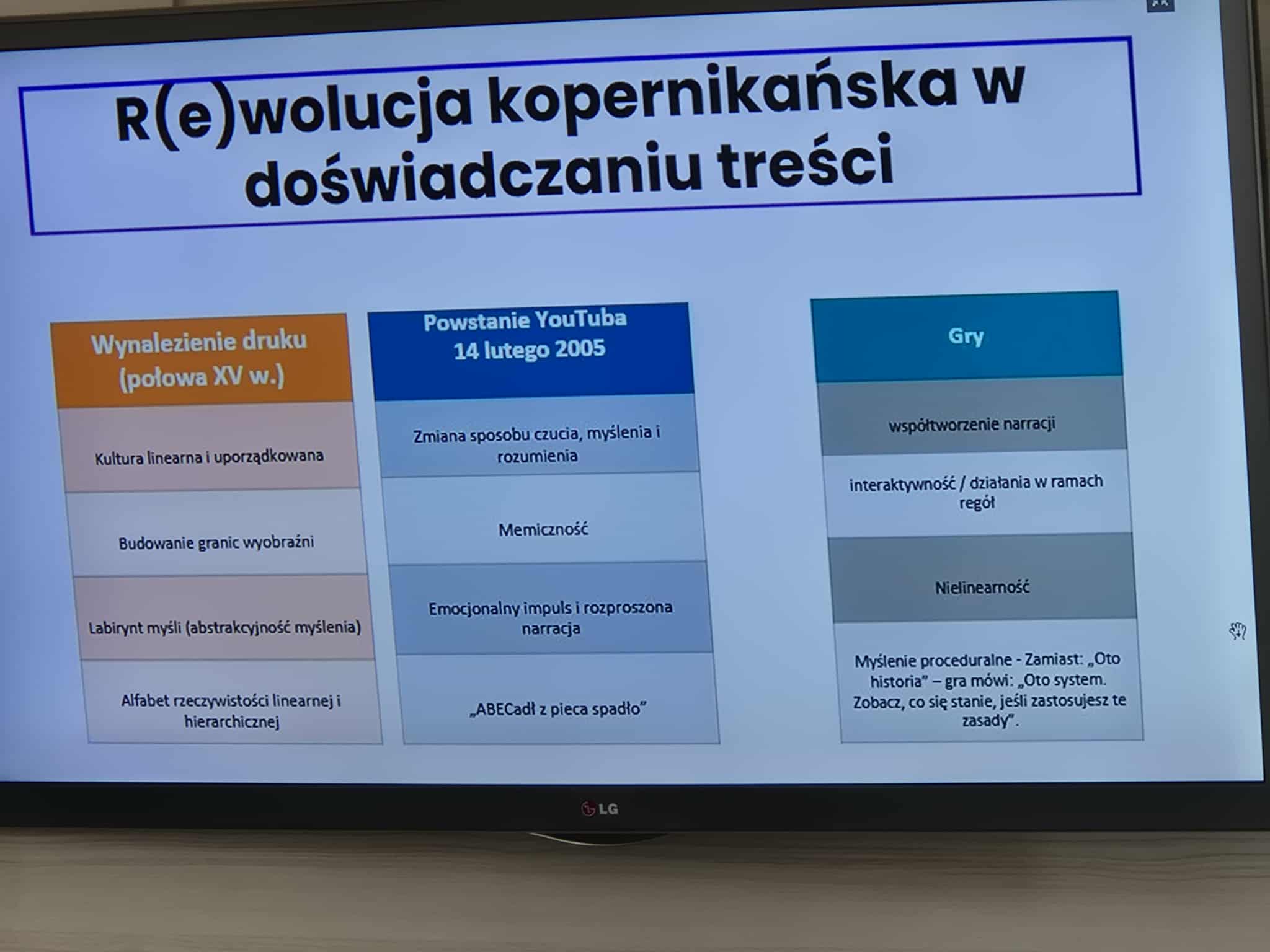 Pierwszy z prelegentów przedstawił temat „Czytelnictwo i popkultura”. Dr Kochaniec pochylił się nad fenomenem gier komputerowych i seriali, które mają ogromny wpływ na współczesną młodzież, ale i nie tylko. Także literatura nie pozostaje obojętna na zjawiska popkulturowe, co potwierdza choćby fenomen niezwykle popularnej gry komputerowej Minecraft, czy bohaterów bajek z uniwersum Walta Disneya, obecnych również na kartach książek dla dzieci i młodzieży. I choć można dyskutować o walorach literackich czy edukacyjnych tego typu wytworów popkulturowych, to bezsprzecznie przyciągają one dzieci i młodzież do bibliotek i księgarń, zachęcając do kontaktu z książką.
