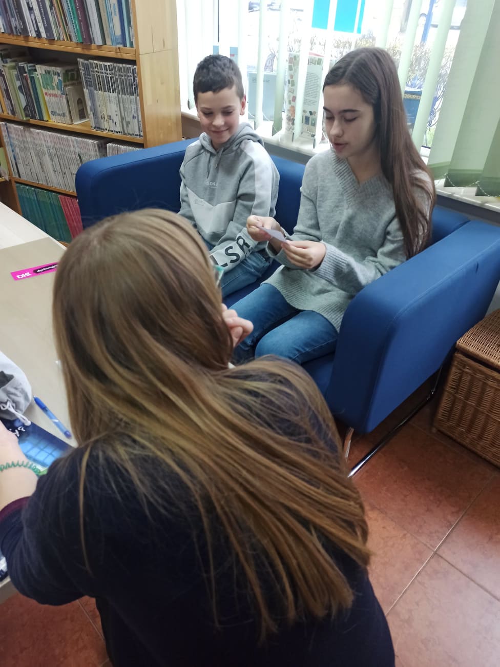 Następnie, by "rozgrzać się" przed rozmową o przeczytanej książce, losowaliśmy wierszyki łamiące języki, które odczytywaliśmy na głos. Trafiliśmy tym samym na kilka trudnych słów, ale i na kilka zabawnych rymów. Było wesoło.